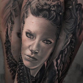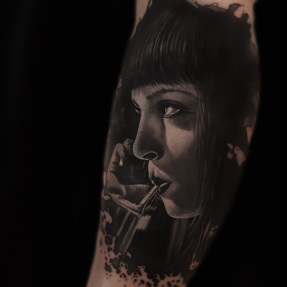 Barbara tatoue uniquement d'après de très bonne photos, tant au niveau de la définition que sur le plan artistique. Le choix de la photo de référence est primordiale dans le style photo-réaliste.