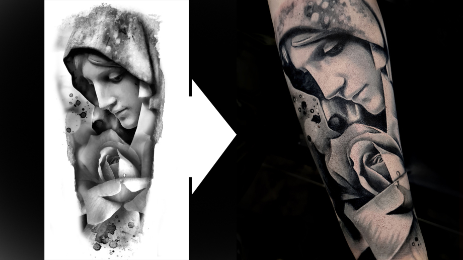 Le tatouage réaliste consistant à reproduire fidèlement la réalité d'une photo, Barbara ROSENDO est constamment à la recherche de photographies d'art autour desquelles elle réalise des compositions originales.
